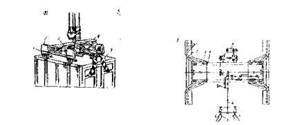 Типовой технологический процесс, рекомендует использовать для перегрузки среднетоннажных контейнеров козловые краны КК-5, КК-6, оборудованные автостропами, которые позволяют осуществлять автоматическую строповку и расстроповку контейнеров. Автостроп, рис. 5 состоит из рамы, двух кареток 2 и 3, механизмов, захват 1, привода 5, ходового винта 6 и фиксирующих, козырьков 7.