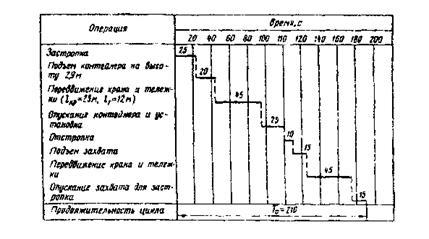 - коэффициент использования машины по грузоподъемности, Время цикла зависит от технических параметров перегрузочных машин, типов грузозахватных механизмов и условий эксплуатации. Для козловых и мостовых кранов: