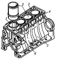 блок; 5 – картер; 6