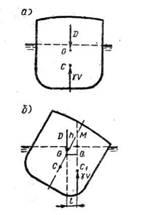 Поперечную остойчивость в зависимости от угла крена делят на начальную при малых (до 10—15°) углах крена и остойчивость при больших углах крена.