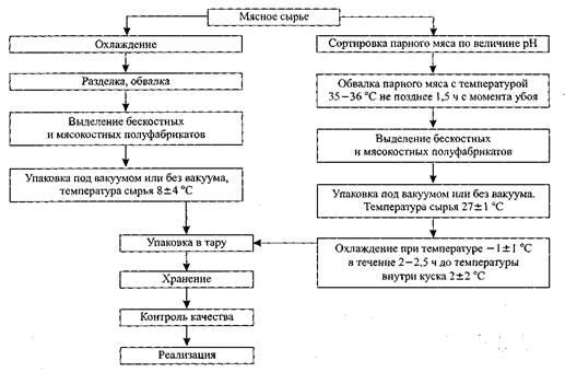 Рис. 1 -Технологическая схема производства натуральных полуфабрикатов из говядины, свинины и баранины