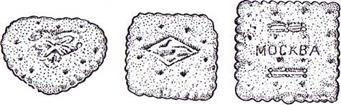Песочное печенье изготовляют из пластического теста со значительным содержанием сахара и жира, формуют методом выемки (песочно-выемное) и методом отсадки (песочно-отсадочное). Оно имеет рассыпчатую структуру. На мелких предприятиях при формовании ручным способом готовое тесто кусками массой 7-8 кг раскатывают скалкой im столе вручную. Кусок теста разминают на столе рукой, а затем раскатывают в двух направлениях до получения равномерного пласта толщи ной около 5 мм. Специальными фигурными выемками вырезают заготовки печенья, которые затем выпекаются в печах различных моделей Для процесса формовки (вырубки) применяются разнообразные фигурные вырубки из белой жести. Большой выбор форм («ромашка «бабочка», «грибок», «елочка», «комета», «облако», карточная тема «крести», «пики» и т. д.) позволяет вырабатывать печенье различных форм, что приводит к увеличению ассортимента выпускаемых изделий.
