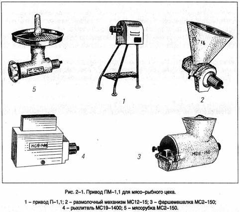 Привод ПМ – 1,1 (см. прилож. 1) с комплектом сменных механизмов предназначен для механизации процессов переработки мясных и рыбных продуктов на предприятии общественного питания.