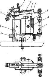 отключающая пружина, регулируемая, 4 – упорная скоба с винтом; 5 - якорь; 6 - немагнитная прокладка; 7-тяга; 8 – U-образный сердечник; 9 - катушка; 10 -