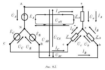 1- звезда с нейтральным (нулевым) проводом (рисунок 8.1);
