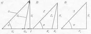 18. По результатам измерений и расчётов, построил Векторную диаграмму и треугольники сопротивлений и мощностей: