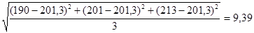 Визначимо рівень ризику за проектом через оцінку невизначеності прогнозних варіантів прибутку. Розрахуємо середньоквадратичне відхилення прогнозів від середнього розміру прибутку і коефіцієнт його варіації.