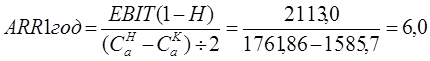 EBIT(1-H) – доход после налоговых, но до процентных платежей, в данном случае используем чистую прибыль нарастающим итогом на конец периода из 5 таблицы, т.е. на конец 1-го года в случае расчета за 1год, и на конец 2-го года, в случае расчета за 2года. Чистая прибыль как раз и будет доходом, после уплаты налоговых платежей.
