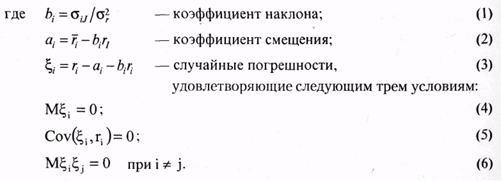 где PV 0 — значение индекса в начале исследуемого периода; С I — значение индекса в конце рассматриваемого периода. Доходность r i ведет себя как случайная величина с определенным средним r 1 и дисперсией ? r 2. Базовая доходность r 1 каким-то образом связана с доходностью финансовых активов r j, что измеряется ковариациями ? ij. В рамках модели с одним индексом предполагается, что доходности рассматриваемых активов представляются в виде