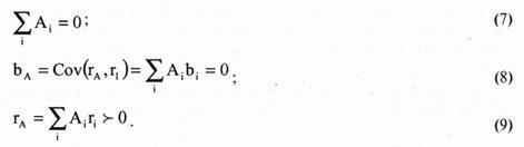 Условие (7) означает, что для составления портфеля А не требуется дополнительных ресурсов. Условие (8) означает, что арбитражный портфель не чувствителен к базовому фактору. Условие (9) означает, что ожидается положительная доходность портфеля А. Арбитражный портфель формируется таким образом, чтобы его риск был существенно меньше риска текущего портфеля. Еще предпочтительнее, чтобы риск арбитражного портфеля был близок к нулю: