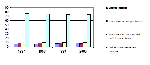 Итак, можно сделать вывод о том, что основными источниками формирования Бюджета развития РФ в 2000 г. являлись связанные инвестиционные иностранные кредиты, получаемые под гарантии Правительства Российской Федерации (85,4 %).
