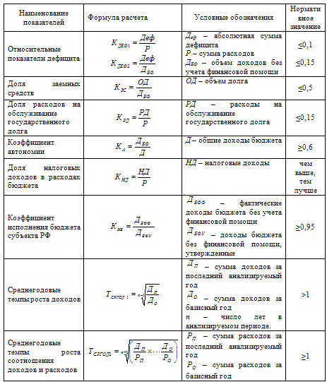 Финансовая устойчивость регионального бюджета – это обусловленное внутренними и внешними факторами состояние бюджета региона, характеризующееся независимостью от внешних источников и обеспечивающее стабильные возможности для финансирования расходов. Обобщение существующих методик анализа финансового состояния и качества управления бюджетами, содержащихся в различных исследованиях и приказах Министерства финансов РФ, позволило исследователям усовершенствовать методику анализа финансовой устойчивости бюджета. В качестве инструментария для оценки финансовой устойчивости регионального бюджета применяются показатели, представленные в таблице 1.1.