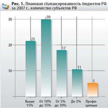 В качестве примера можно назвать Московскую область, где в результате исполнения бюджета на 2007г. фактический дефицит составил 21,4млрд. руб., причем уточненный план по доходам перевыполнен на 31,6млрд. В Ханты-Мансийском автономном округе дефицит был равен 10млрд. руб. при перевыполнении плана по доходам на 22,5млрд., в Самарской области эти показатели достигли 4,4млрд. и 10,1млрд. соответственно, в Иркутской области– 3,3млрд. и 14,5млрд. Аналогичная ситуация наблюдается еще в 30 субъектах РФ. Общий дефицит бюджетов этих регионов составил 87,7млрд. руб., а общее перевыполнение плана по доходам– 286,6млрд.