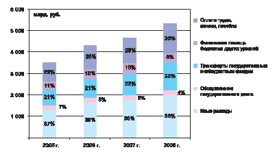 Рис. 5. Распределение дополнительных ресурсов федерального бюджета в 2006–2008 гг. млрд. руб.