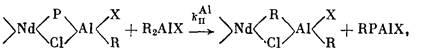 Изложенные результаты позволили предположить, что в состав действующих активных центров тербиевых катализаторов входят молекулы мономера и непредельные фрагменты полиизопрена, которые непосредственно не участвуют в дальнейших актах внедрения в полимерную цепь, но определяют СР