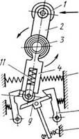 На рис. 9 показан выключатель с малым временем срабатывания (моментного действия). Контакты подобных выключателей переключаются с постоянной скоростью при определенном положении производственного механизма независимо от скорости движения. Поэтому их применяют при малых скоростях (до 0,5 м/мин) или при необходимости повышенной точности срабатывания (до 0,05 мм).