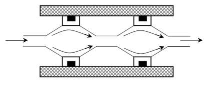 - ослаблення паразитного зв’язку шляхом рознесення джерел і приймачів завад або шляхом ортогонального розташування провідників в сусідніх парах ДП, зменшення довжини взаємодіючих ділянок, використання матеріалів з малою діелектричною проникністю;