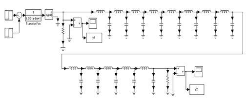 , после чего произвела моделирование электрической принципиальной схемы в Sym Power Systems при количестве звеньев 2n, n, 0,5n (рис.1.1-1.3) и получила графики входных и выходных напряжений, представленных на рисунках 2.4-2.6