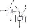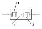 Рис. 3. 1 и 2 - преобразователи; 3 - звукопровод.