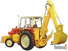 Для механізації земляних і вантажних робіт невеликих об’ємів випускають гідравлічні екскаватори ЕО-2621В 2-ї розмірної групи, які монтують на пневмоколісних тракторах ЮМЗ-6А. Екскаватор ЕО-2621В (див. Рис. 2.1.) призначений для розробки грунтів I...III категорій (ГОСТ 17343—84) інавантаження сипких і мілкодроблених матеріалів. Машина має два види робочого обладнання: екскаваторне і бульдозерне.