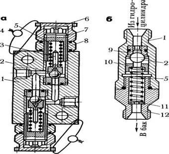 Рис. 2.7. Перепускний (а) і розвантажувальний (б) клапани: