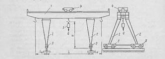 Для других видов козловых кранов, то есть полукозловых и однобалочных, принцип крепления кран-балки отличается. Здесь она укрепляется на стенах как опорных выступах. Обычно место крепления крана располагается ниже или на уровне плоскости движения кран-балки, что требует использования всей площади строения. В целях увеличения пролета применяют дополнительно поддерживающие несущие кран-балки как усиленные опоры.