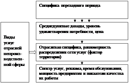 Система взаимосвязей перечисленных факторов может быть представлена схемой рис. 4. Два фактора на этой схеме образуют замкнутый цикл взаимосвязей. Это уровень качества услуг и доходов потребителей. Рассмотрим их особо.