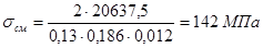 где – рабочая длина шпонки; – глубина врезания шпонки в ступицу колеса; – допускаемое напряжение смятия для шпонки, изготовленной из стали 45 [1, с. 89].