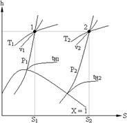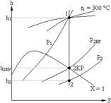 Решение. По диаграмме h – S (см. рис.8.7) находим начальное состояние пара, точка 1. Принимая h1 = h2, находим конечное состояние пара, точка 2.