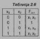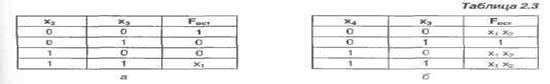 При переносе в сигналы настройки двух переменных (Хд и «Xj) для поиска остаточных функций следует просмотреть четверки смежных строк таблицы с неизменными наборами Х2Х3 – аргументами, подаваемыми на адресные входы УЛМ. Этот просмотр приводит к следующей таблице (табл. 2.6).
