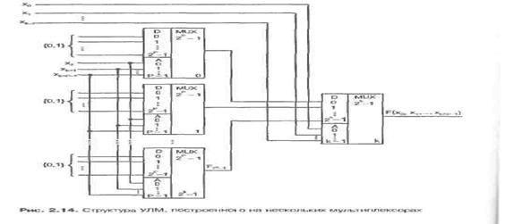 Полученному выражению отвечает соотношение между числом входов разного типа для мультиплексора. При этом на адресные входы следует подавать аргументы функции, а на информационные входы – сигналы настройки (рис. 2.12, я). Таким образом, для использования мультиплексора в качестве УЛМ следует изменить назначение его входов.