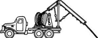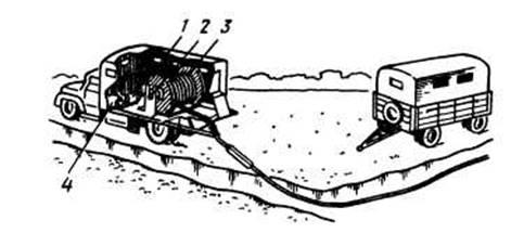 Рис. 1.4. Розмотування кабелю лебідкою з барабана, піднятого на домкратах