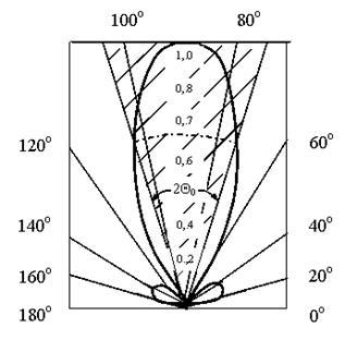 Обычно характеристику направленности нормируют к единице путем деления ее на величину максимальной напряженности поля, создаваемой в направлении максимума излучения: