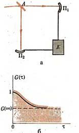 Для пояснення такої поведінки необхідно прийняти до уваги флуктуації інтенсивності світлового пучка. Якби флуктуації не було, то при всіх значеннях τ було б = 1. Проте за наявності флуктуації ситуація міняється. Для флуктуації можна визначити характерний масштаб часу. Якщо τ менше характерного часу флуктуації, то в кореляторі весь час реєструються приблизно однакові сили струмів і близька до одиниці. При збільшенні τ кореляція між силами струмів в кореляторі порушується, максимуми ока в одному каналі потрапляють на мінімуми в іншому і т. д., внаслідок чого зменшується. Коли τ перевершує характерний для флуктуації час, його збільшення не вносить вимірів до співвідношення струмів в каналах і значення залишається постійним. Функція дає інформацію про статистичні властивості випромінювання.