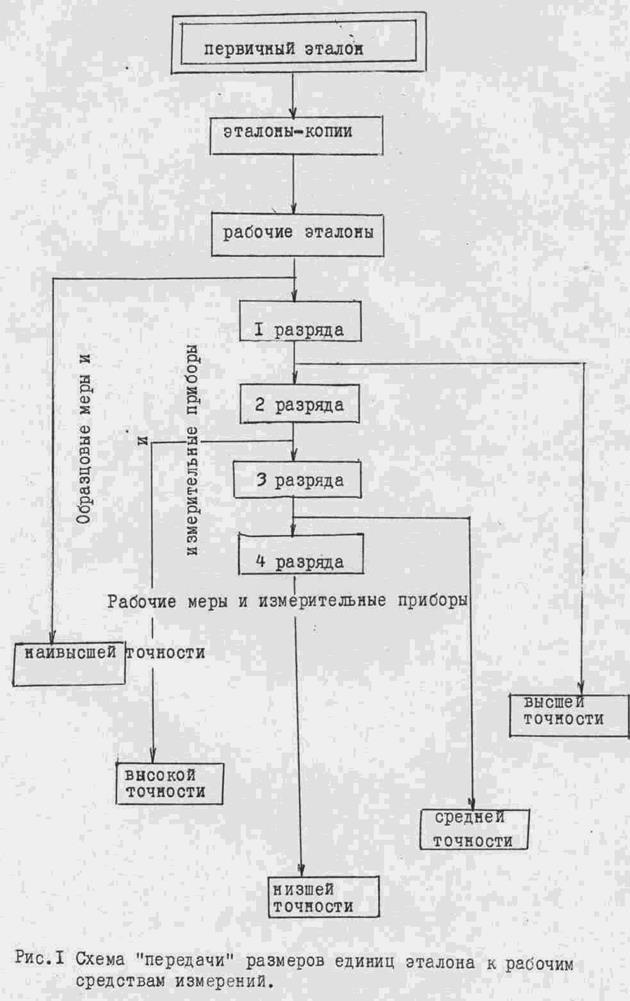 Схема, устанавливающая соподчинение эталона, образцовых и рабочих средств измерения, представлена на рис.1.