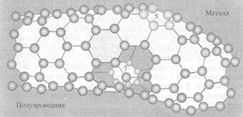 Из углерода можно получить молекулы с гигантским числом атомов. Такая молекула, например С=1000000, может представлять собой однослойную трубку с диаметром около нанометра и длиной в несколько десятков микрон (рис. 7).