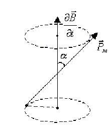 де - змінне в часі магнітне поле; dS – площа контуру вздовж якого рухається електрон; Е – напруженість вихрового електричного поля, породжена зміною магнітного поля.