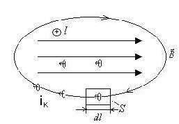 Згідно з рівнянням (14.1.5) змінне в часі магнітне поле породжує вихрове електричне поле, струм якого згідно з правилом Ленца має бути протилежний до діючого мікроструму і.