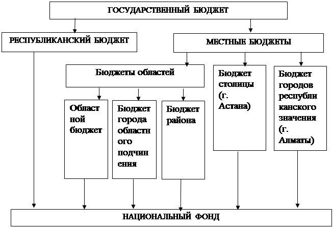 Бюджетная система - важная составляющая часть всей финансовой системы государства. Бюджетная система как экономическая категория представляет собой совокупность финансовых отношений государства с юридическими, физическими лицами и регионами по формированию и использованию централизованного денежного фонда — бюджетов, методов и способов их формирования и исполнения, а также совокупность органов управления этими отношениями. Другими словами, под бюджетной системой понимается совокупность бюджетов всех уровней и Национального фонда РК, а также бюджетного процесса и бюджетных отношений, основанных на экономических и правовых нормах [4, с. 10].