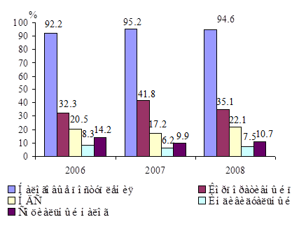 время является чрезмерно большая сфера бюджетного регулирования как следствие низкого уровня собственных доходов местных бюджетов. Причем в средствах бюджетного регулирования преобладают отчисления от общегосударственных налогов и субвенции из республиканского бюджета местным бюджетам. Согласно действующей системе объем изымаемых бюджетных средств устанавливается в абсолютной сумме по каждой области и району. Сам этот механизм напоминает инструмент, использованный при административно-командной системе, так как в нем нет экономического рычага стимулирования местных исполнительных органов в увеличении финансовых ресурсов и эффективном их использовании для решения социальных и экономических проблем в регионах [33].