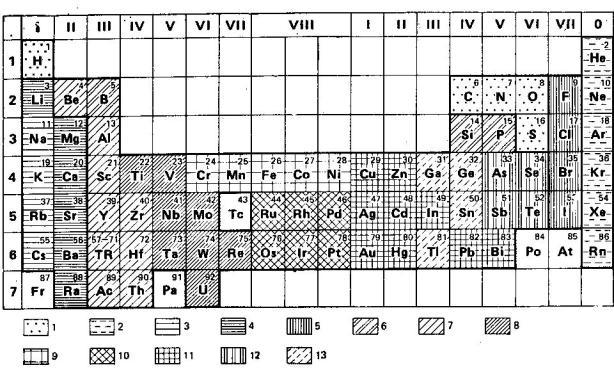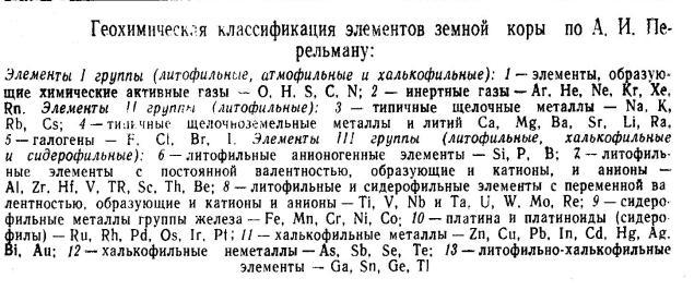 Геохимическая классификация элементов В. М. Гольдшмидта.