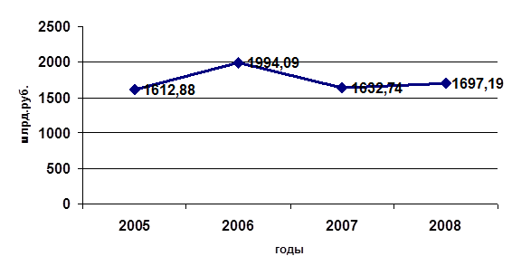 Таблица 2.1 – Основные показатели федерального бюджета в 2005-2008 гг., млрд.руб. [14]