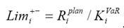Визначення лімітів операційної валютної позиції в цілому для банку здійснюється так. Для кожної з валют проводиться розрахунок VaR з рівнем ймовірності 95 %. Окремо визначаються рівні втрат за позиціями на зростаючому (VaR+) та спадному (VaR-) курсових трендах.