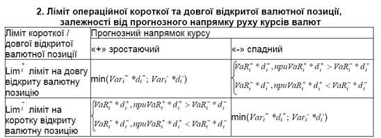 Розраховується ліміт операційної короткої та довгої відкритої валютної позиції залежно від прогнозного напрямку руху курсів валют