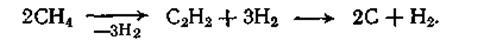 Подобно пиролизу на олефины, реакции образования ацетилена имеют радикально-цепной механизм, причем цепь превращений метана и этана можно представить примерно так:
