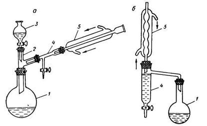 – с холодильником Либиха, б