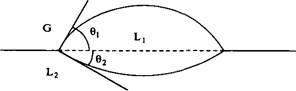 Межфазная граница между двумя жидкостями может быть плоской, если одна из жидкостей, например L2, имеет высокую вязкость. Тогда cosбудет равен 1, и уравнение становится идентичным уравнению Юнга. Полезной величиной является коэффициент растекания 5, определяемый как