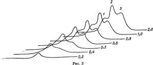 Наличие эффекта снижения подвижности адсорбированных молекул ТГМ-3 при увеличении содержания полимерной микрофазы, подтверждено измерением времен спин-решеточной релаксации ядер Н. На рис. 3 показан спектр ЯМР 'Н ТГМ-3, адсорбированного полимерными зернами (30 об.%) после частичной релаксации, при измерении значений Tt