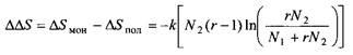 Рассмотрим раствор, состоящий изН\молекул растворителя и N2 молекул полимера со степенью полимеризации г; суммарно число молекул растворителя и мономерных звеньев равноН= N + Nir. Энтропия смешения такой системы выражается уравнением