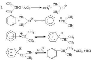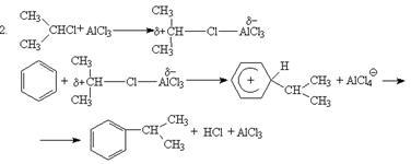 Во втором случае можно предполагать, что электрофилом служит алкильная группа полырного комплекса AlCl3